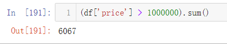 (df[‘price’] > 1000000).sum():统计所有房价大于100万美金的房屋数量