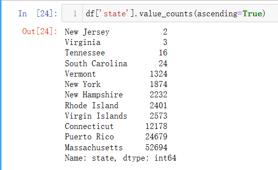 参数ascending:布尔类型,默认为True,按升序排列;False代表按降序排列。