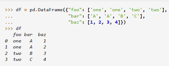 最简单的方式就是创建一个字典结构,其中Key表示列名,Value表示各个样本的实际值,然后通过pd.DataFrame()将字典转换为DataFrame结构。操作如下:
