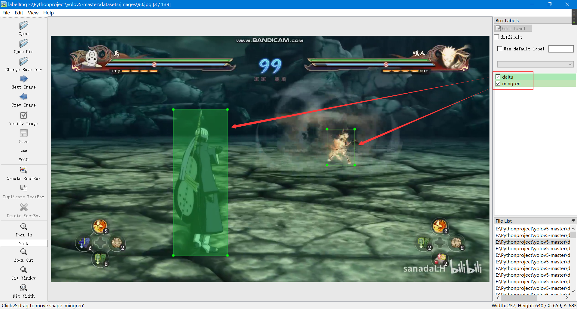 导入图片后进行标注(注意如果标注框一直强制正方形,请按快捷键 CTRL+SHIFT+R 或 点击‘Edit’->‘Draw Squares’ ):
